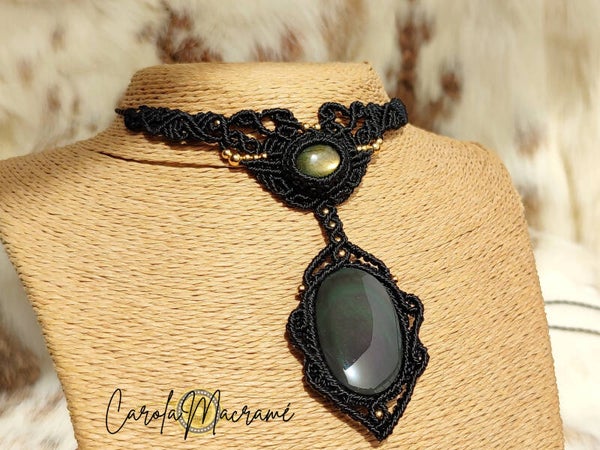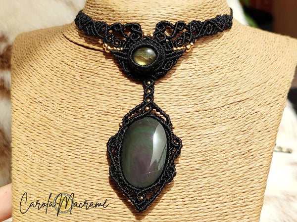 Collar gargantilla ''Ysera'' con Labradorita y Obsidiana Huichol