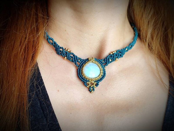 Collar gargantilla o tiara con Piedra Luna. Color turquesa