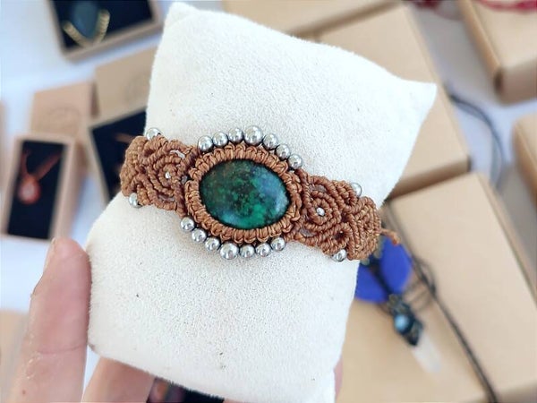 Brazalete de macramé hecho a mano con hilo encerado de Brasil "Linhasita" 1mm color marrón