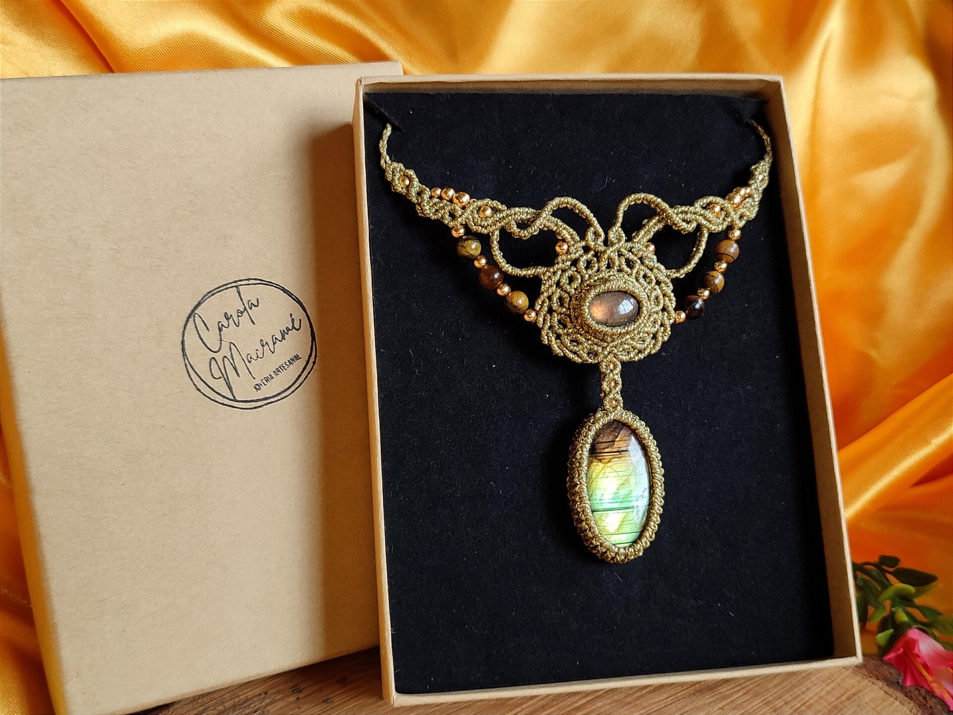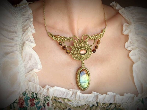 Collar o gargantilla ''Andrómeda'' con Labradorita y Ojo de Tigre
