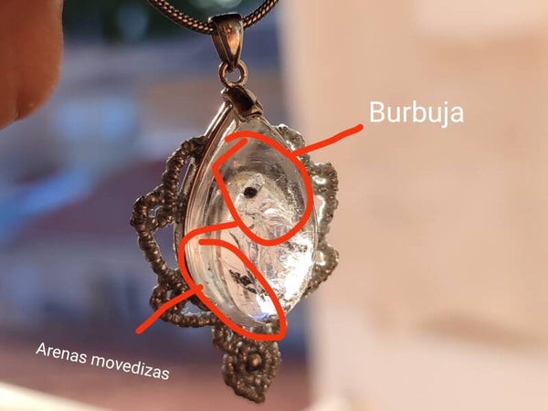 Colgante único con diamante Herkimer Enhydro con burbuja y arenas movedizas. Plata 925