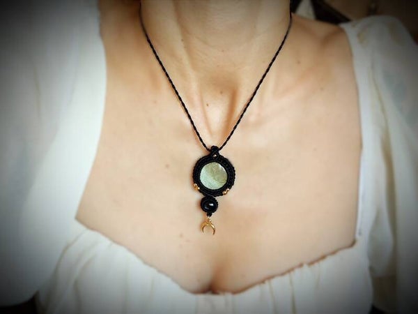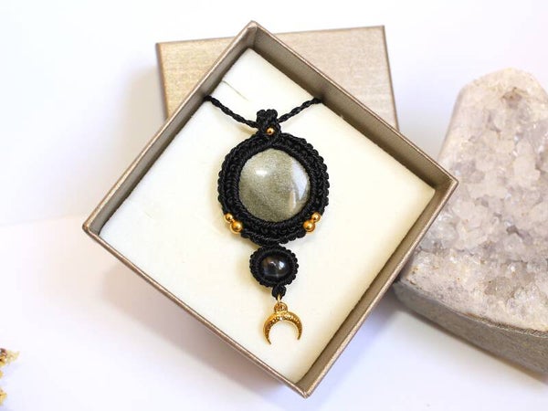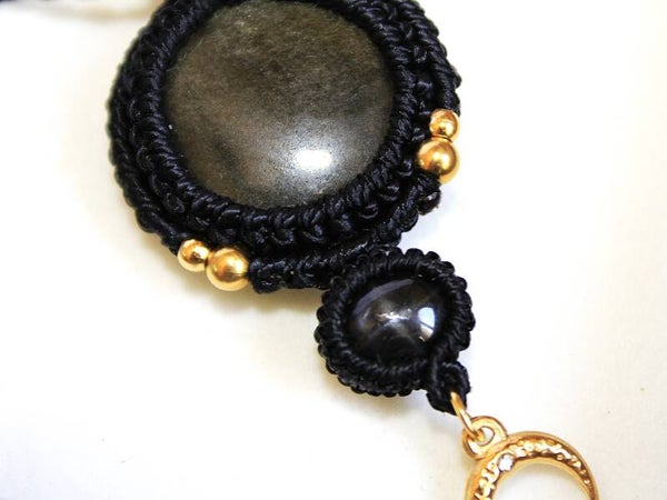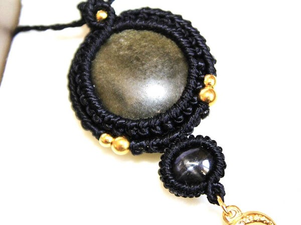 Collar colgante de macramé con Obsidiana dorada y BlackStar. Negro.