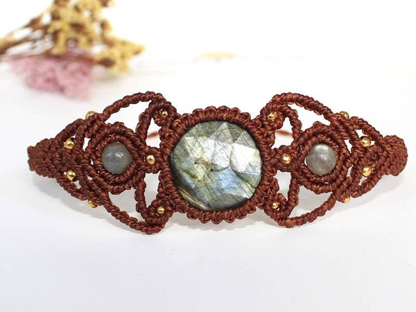 Pulsera brazalete con Labradorita facetada. Marrón.