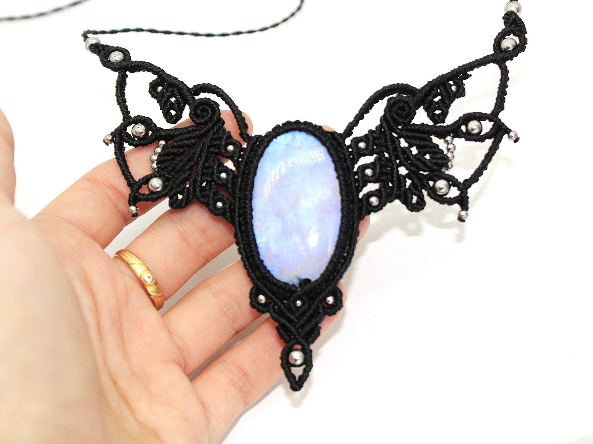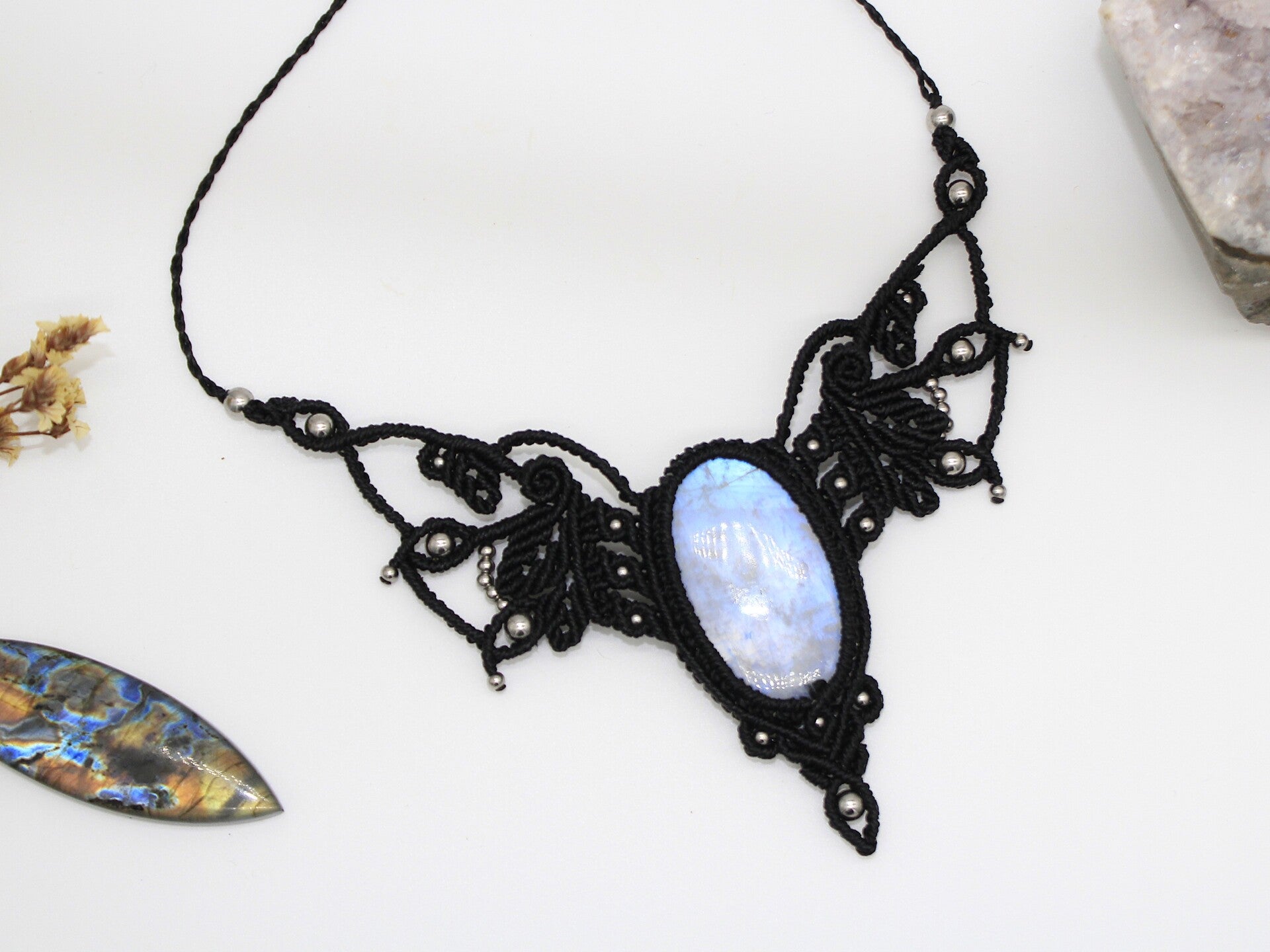 Collar único con Piedra Luna. Negro.