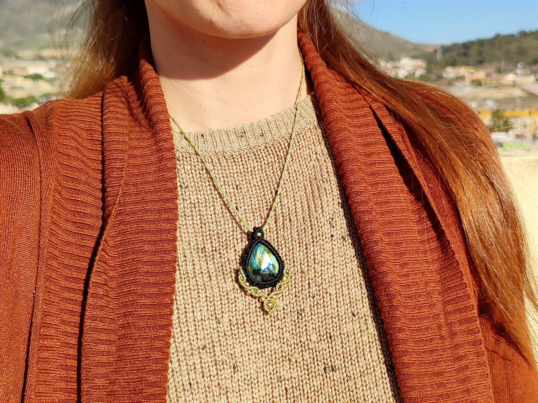 Colgante ''Talia'' con Labradorita facetada en negro y dorado.