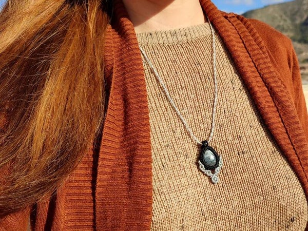 Colgante ''Talia'' con Larvikita noruega. Negro y plata.