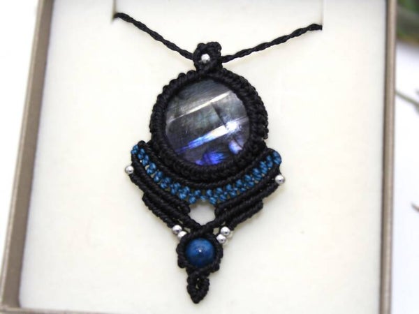 Colgante con Espectrolita y bolita de Apatita. Negro y turquesa.