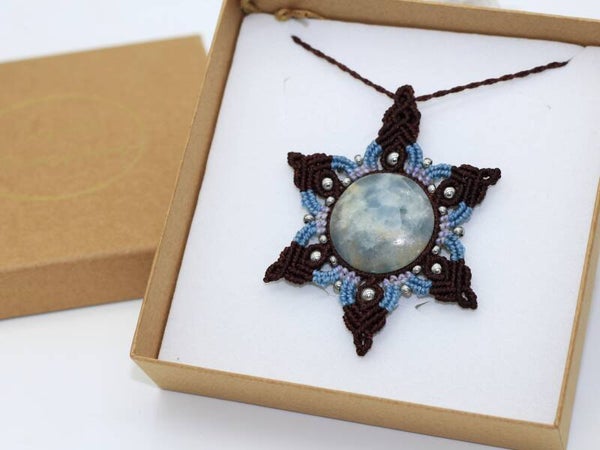 Flor con Ónix Cielo. Marrón chocolate, azul y blanco.