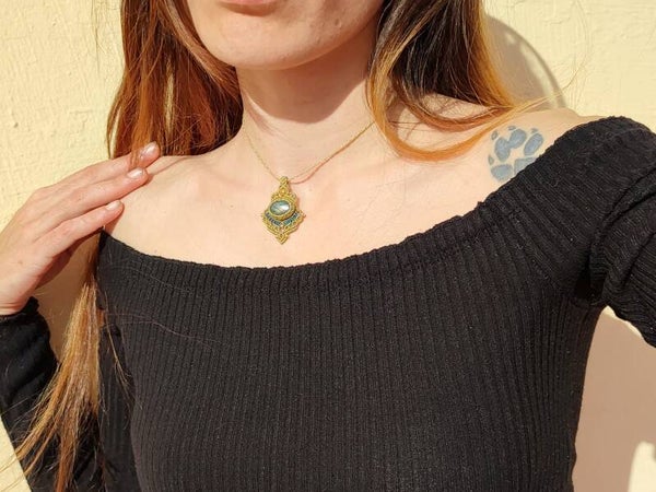 Colgante ''Sirona'' con Labradorita. Dorado y Turquesa.