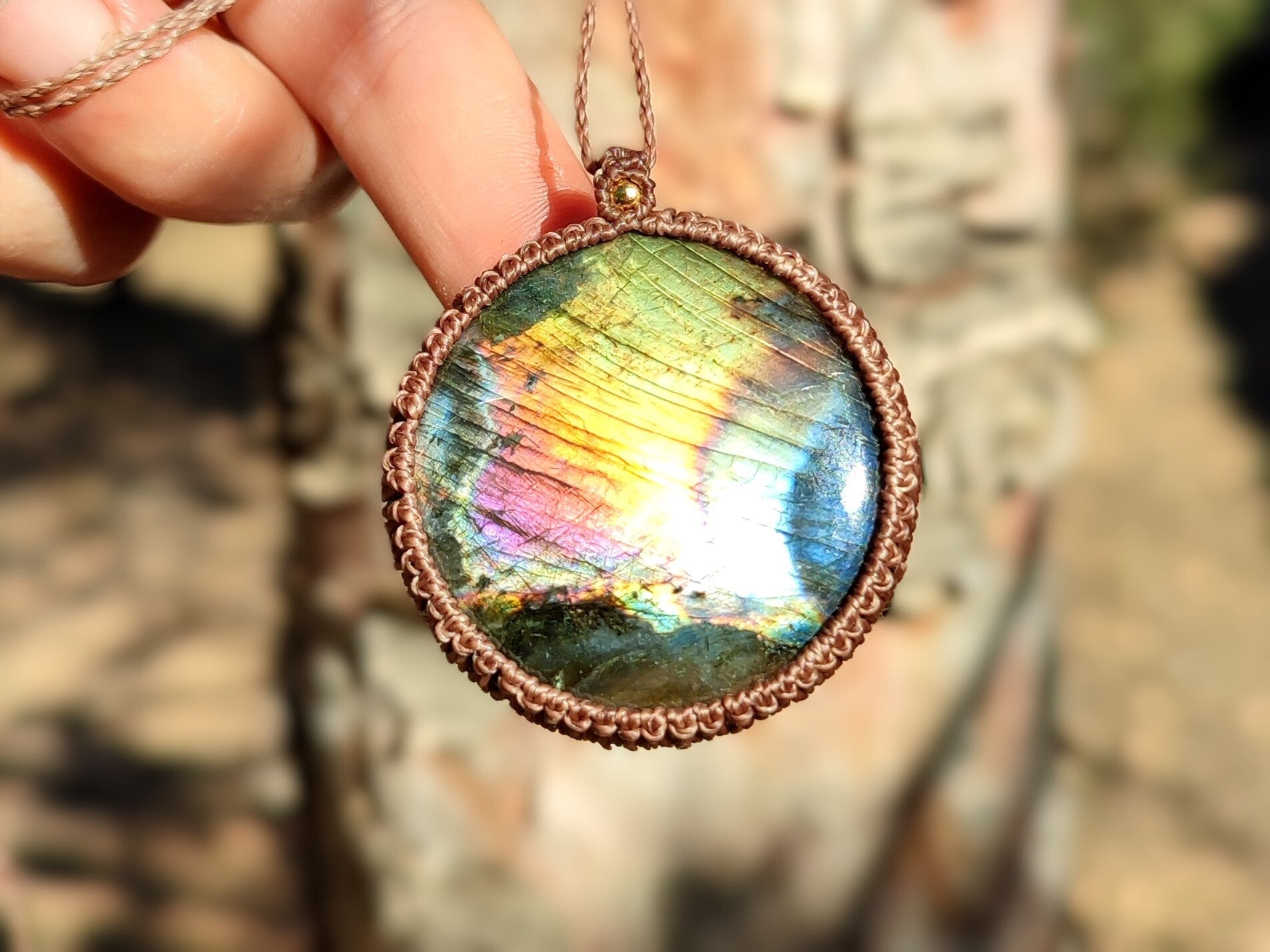 Colgante con Labradorita Espectrolita. Marrón claro.