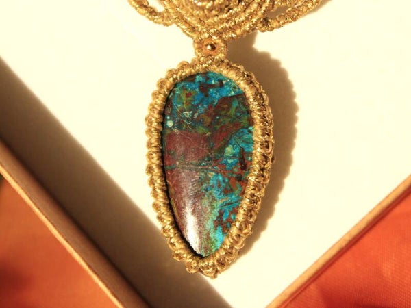 La azurita es un mineral de cobre que se caracteriza por su intenso color azul profundo. Su formación ocurre en ambientes oxidantes, generalmente en asociación con otros minerales de cobre, como la malaquita. Históricamente, la azurita ha sido utilizada desde la antigüedad, tanto como pigmento en pinturas por su vibrante color, como en joyería y decoración.