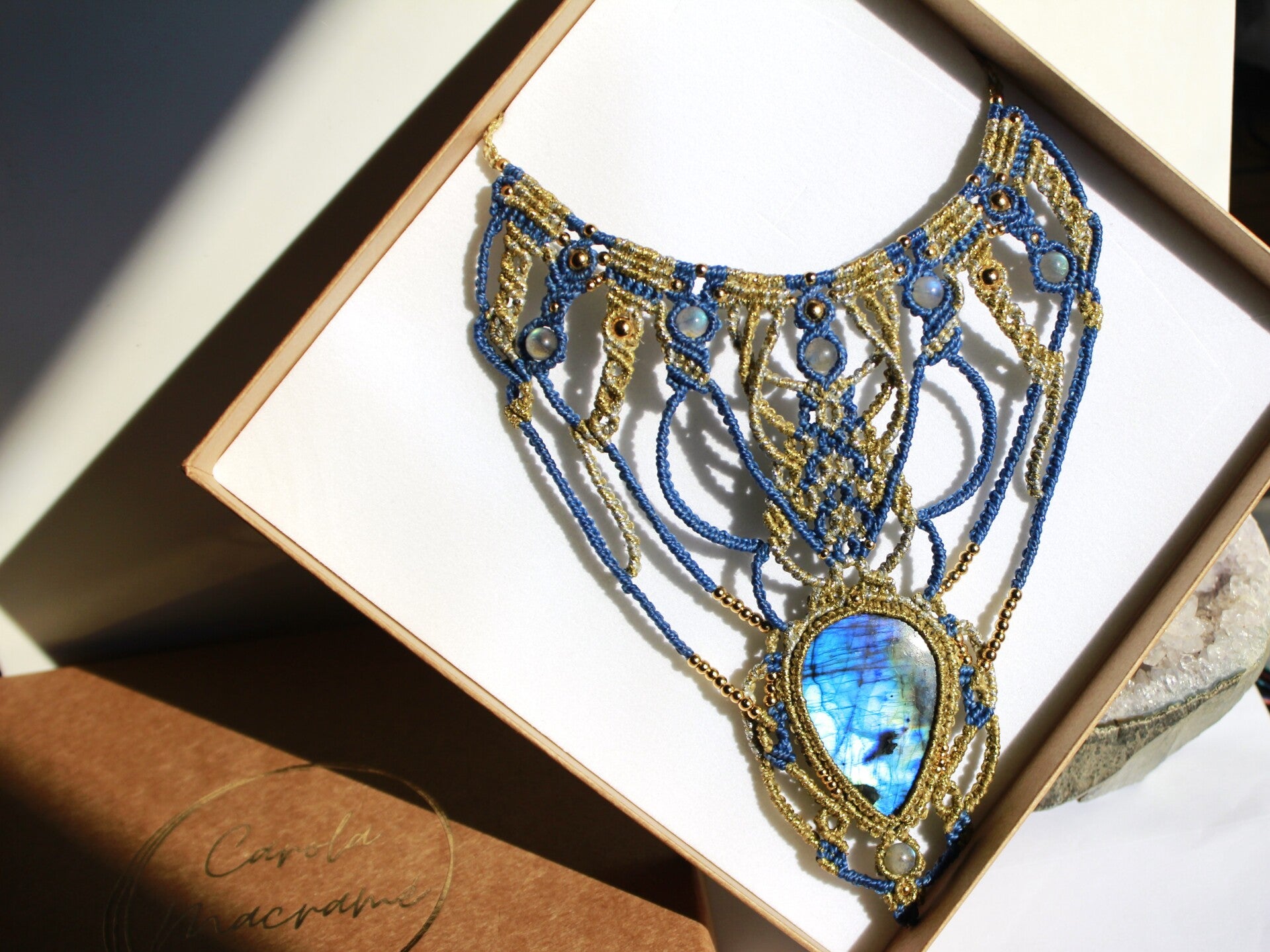 Collar único ''Cleopatra'' con Labradoritas. Azul, dorado y plateado.