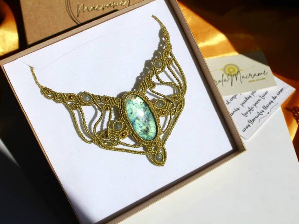 Collar único ''Brahma'' con Labradoritas. Dorado.