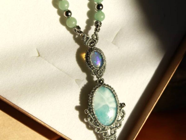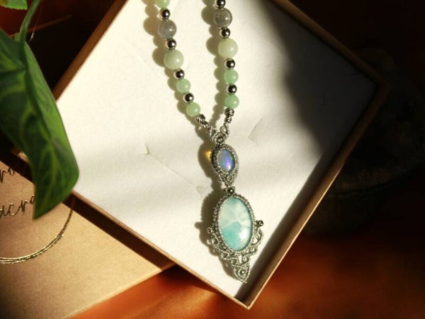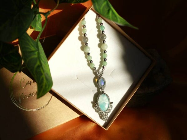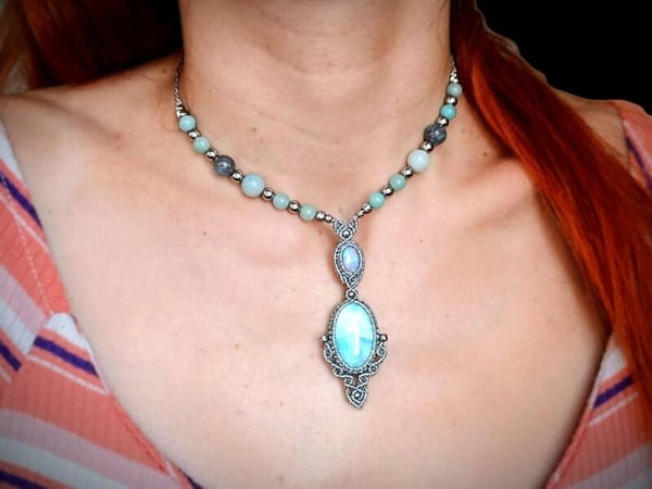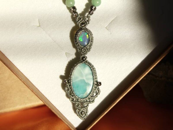 Collar o colgante ''Shambala'' con Ópalo etíope y Larimar. Plateado.