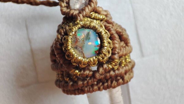 Colgante con punta de Cuarzo Maestro, Ópalo mexicano y Turmalina blanca