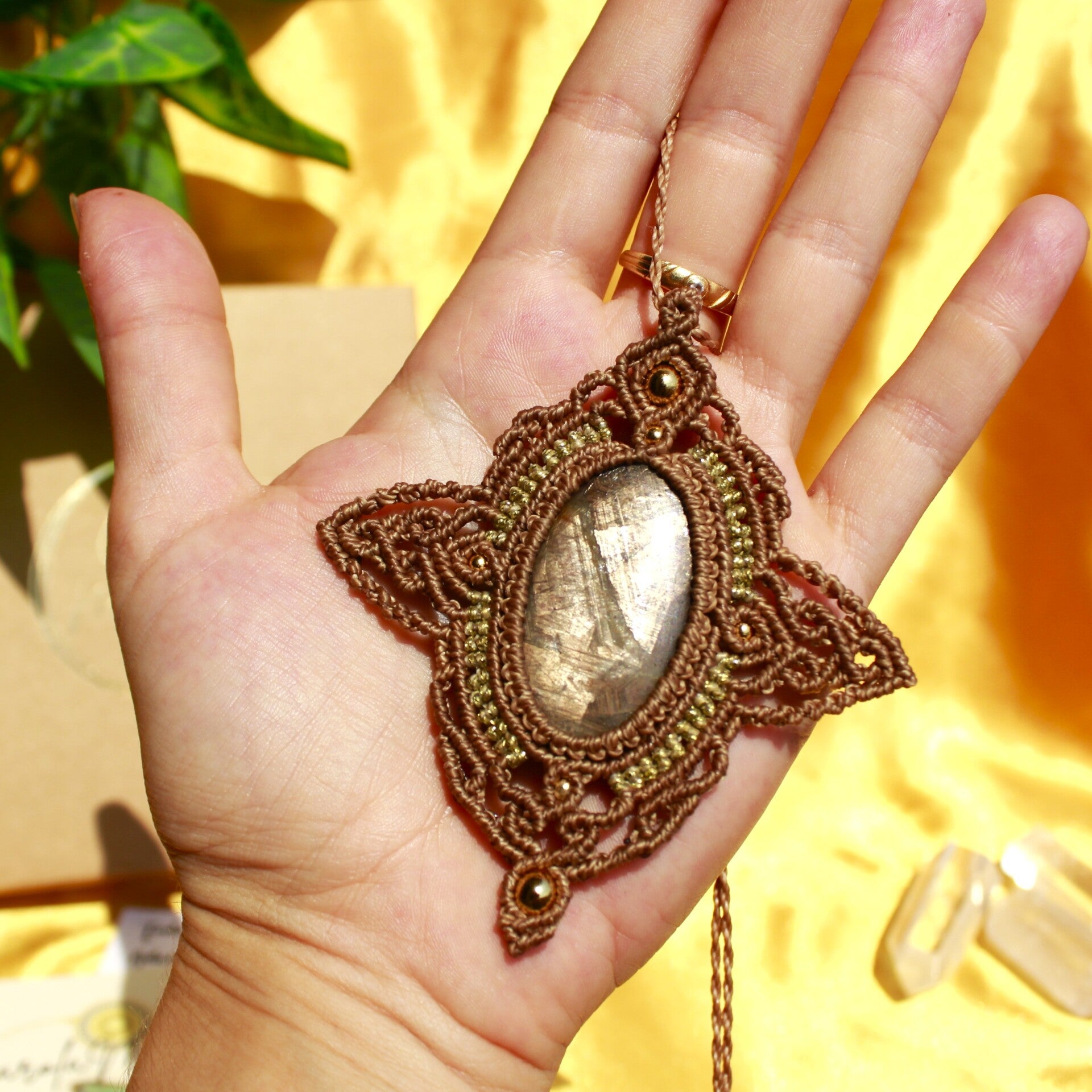 Colgante grande Hidraya. Único, con Zafiro. Marrón y dorado.