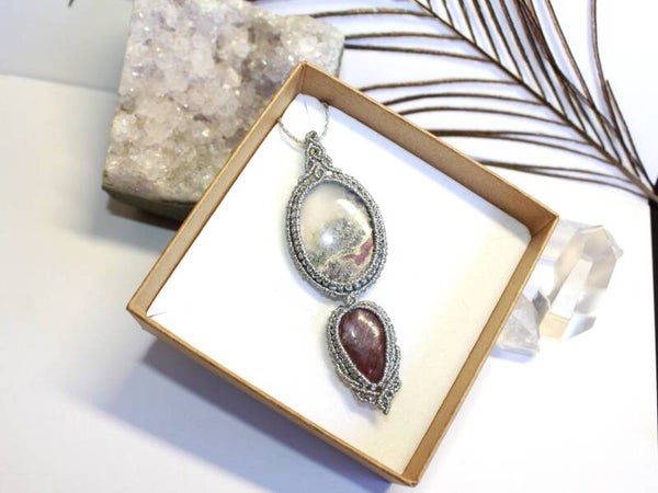 Colgante con Ágata Musgosa de Indonesia y Turmalina Rosa. Plateado.