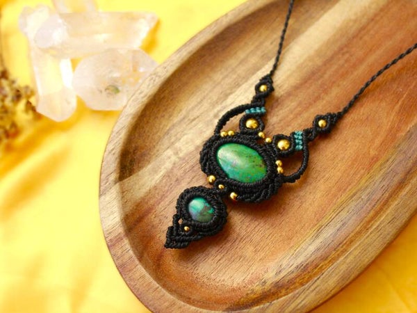 Colgante Chandra con Crisocola y Turquesa. Negro y mint.