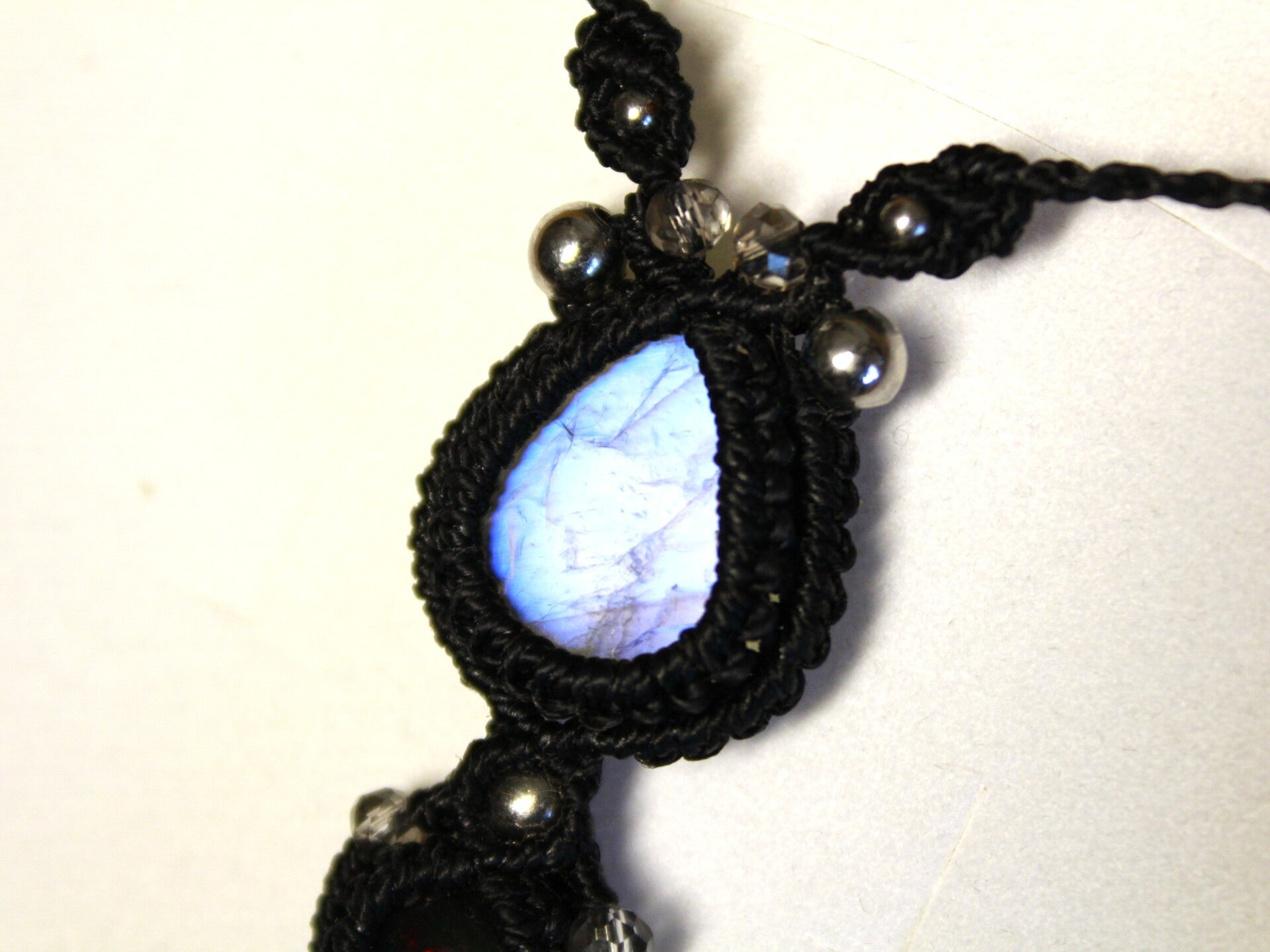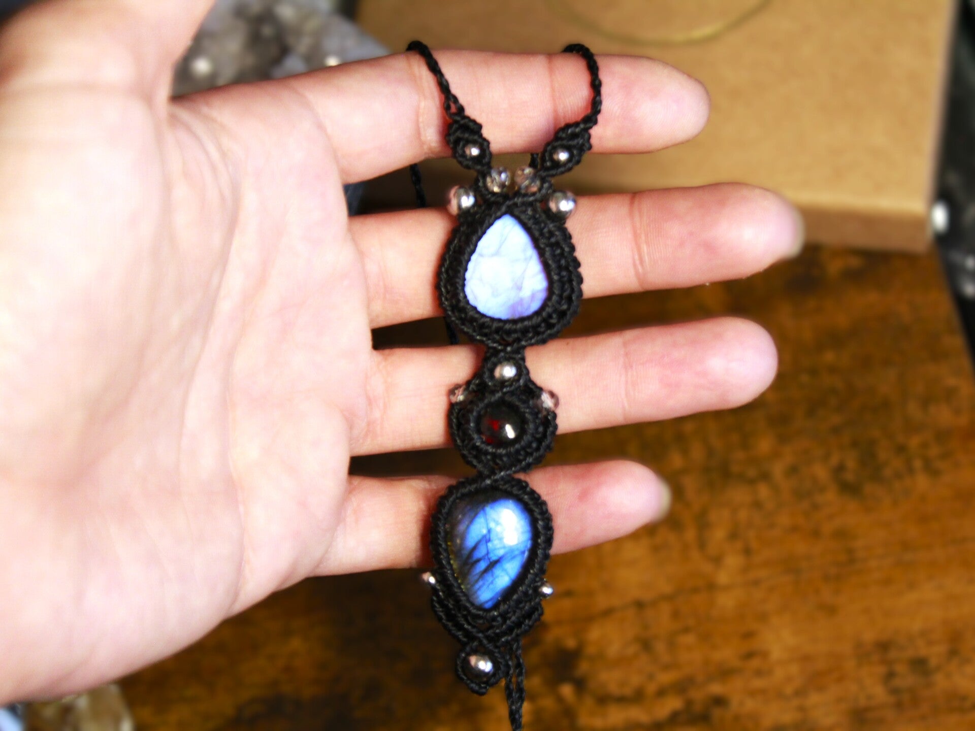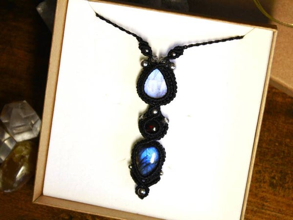 Colgante triple con Piedra Luna, Ópalo Welo negro y Labradorita.