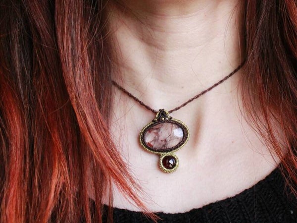 Colgante con Lepidocrocita y Granate. Marrón y dorado.