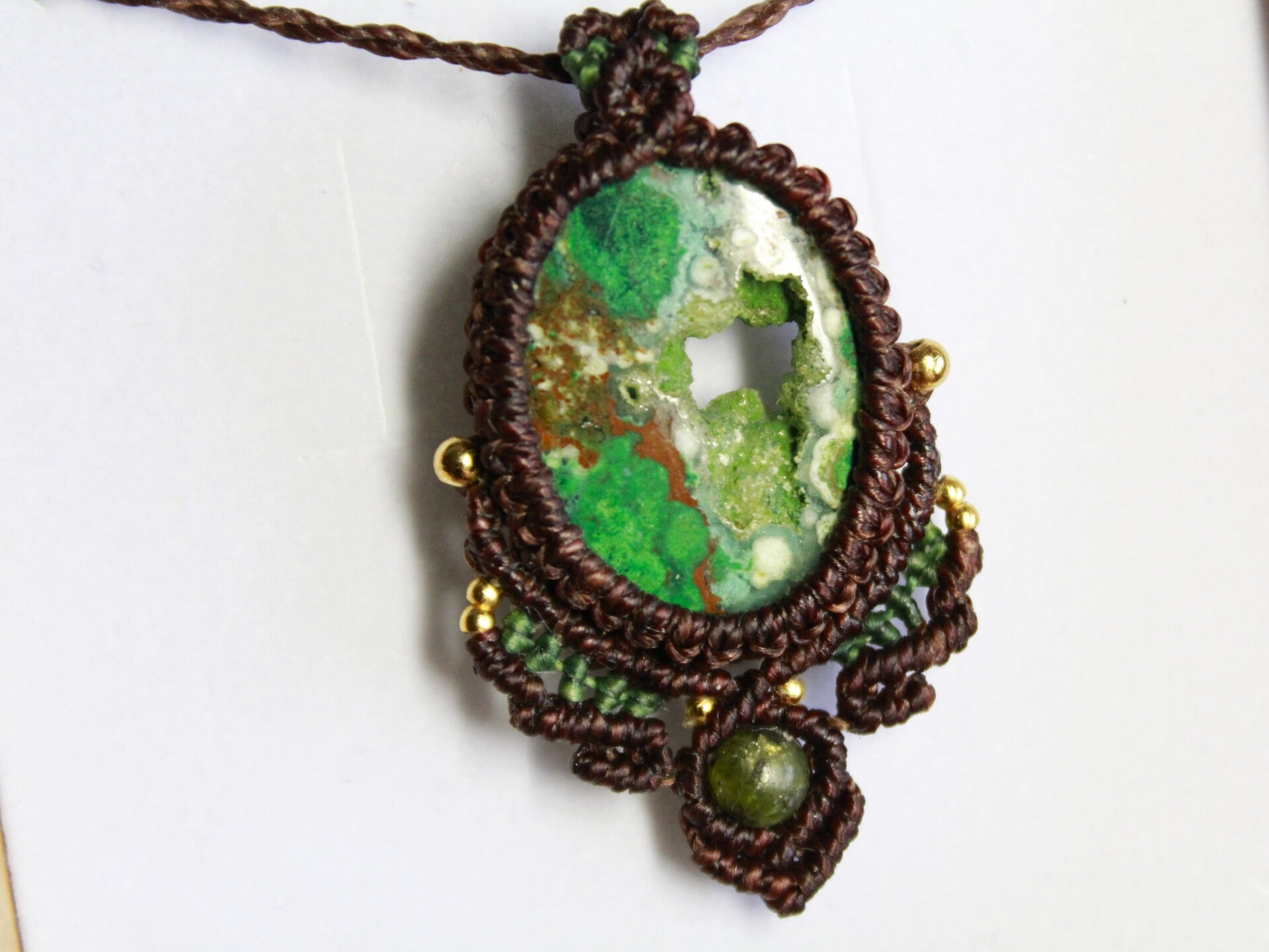 Colgante con Crisocola druzzy y Turmalina Verde. Marrón y verde.
