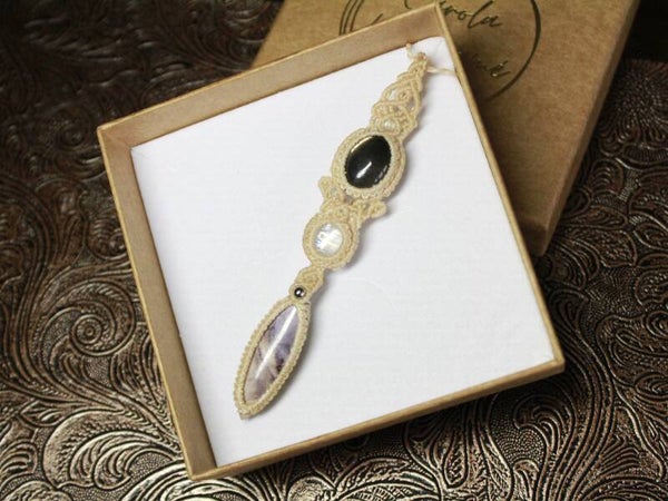💎Colgante único con Iolita Star, Piedra Luna Malawi y Jaspe Tifanny