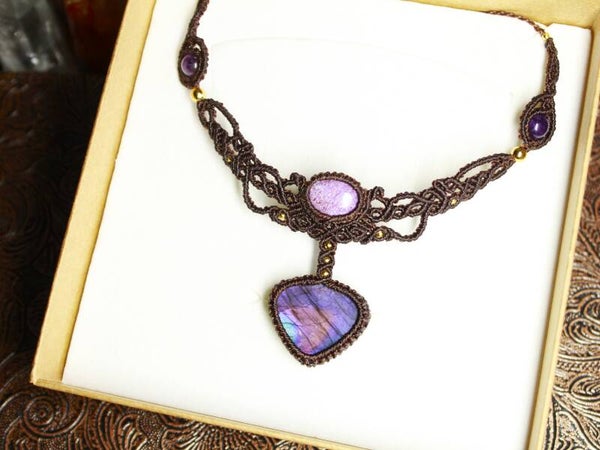 💎Gargantilla con Espectrolita y Stichtita. Cuentas de Amatista.