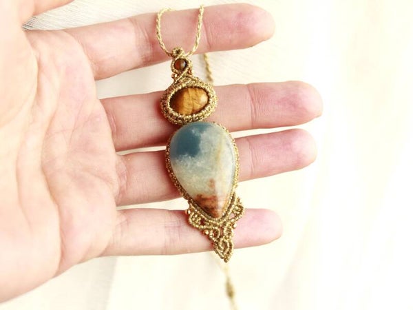 Colgante de macramé Armonía con Ónix Cielo y Ojo de Tigre