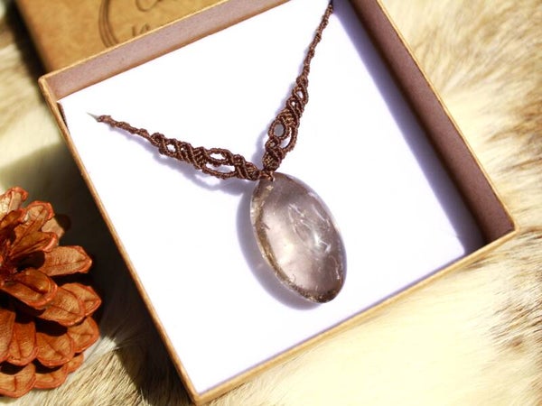 Collar o gargantilla única. Cuarzo Ahumado Enhydro con burbuja en movimiento.